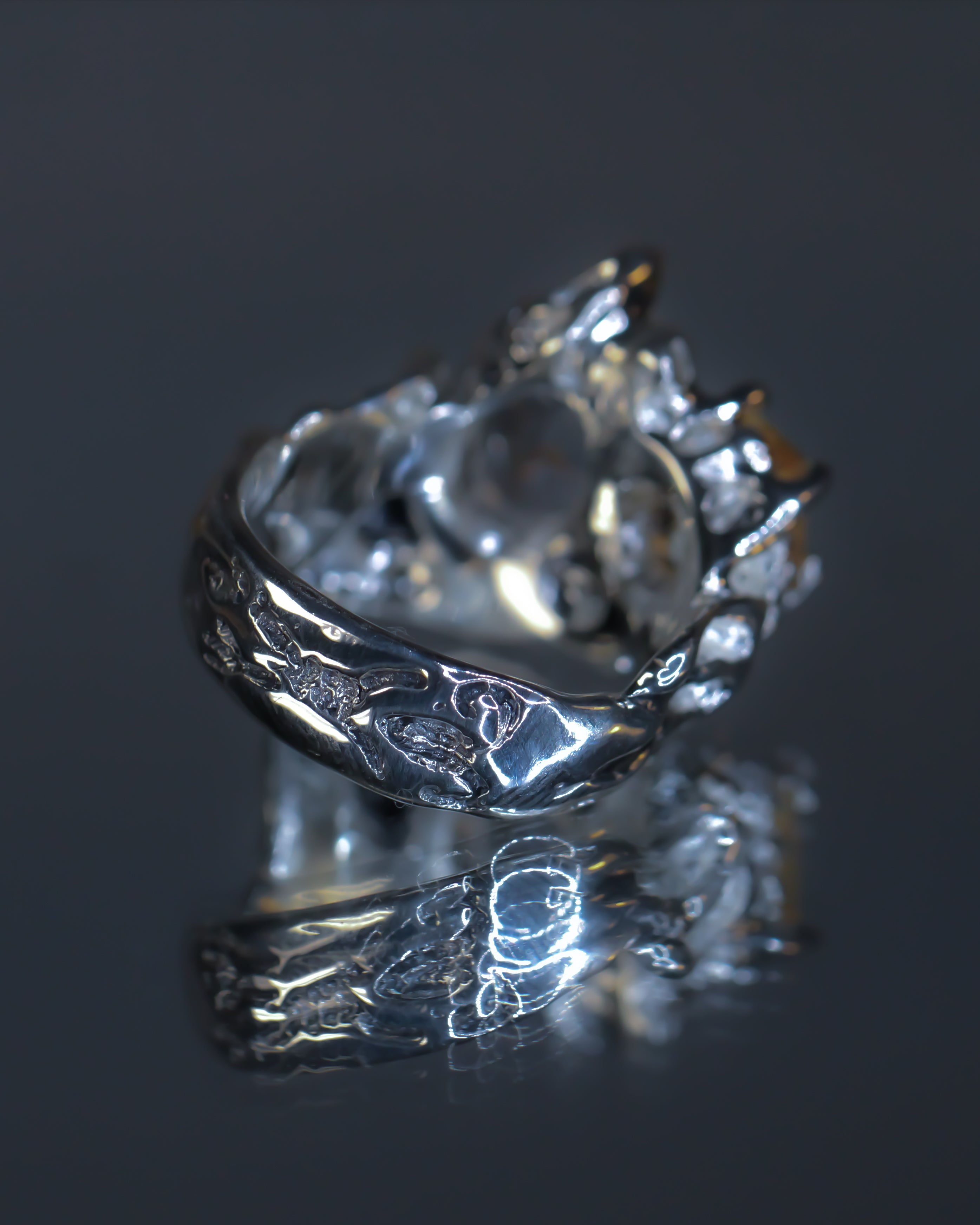 This is a one-of-a-kind ring, hand-carved and cast in sterling silver.