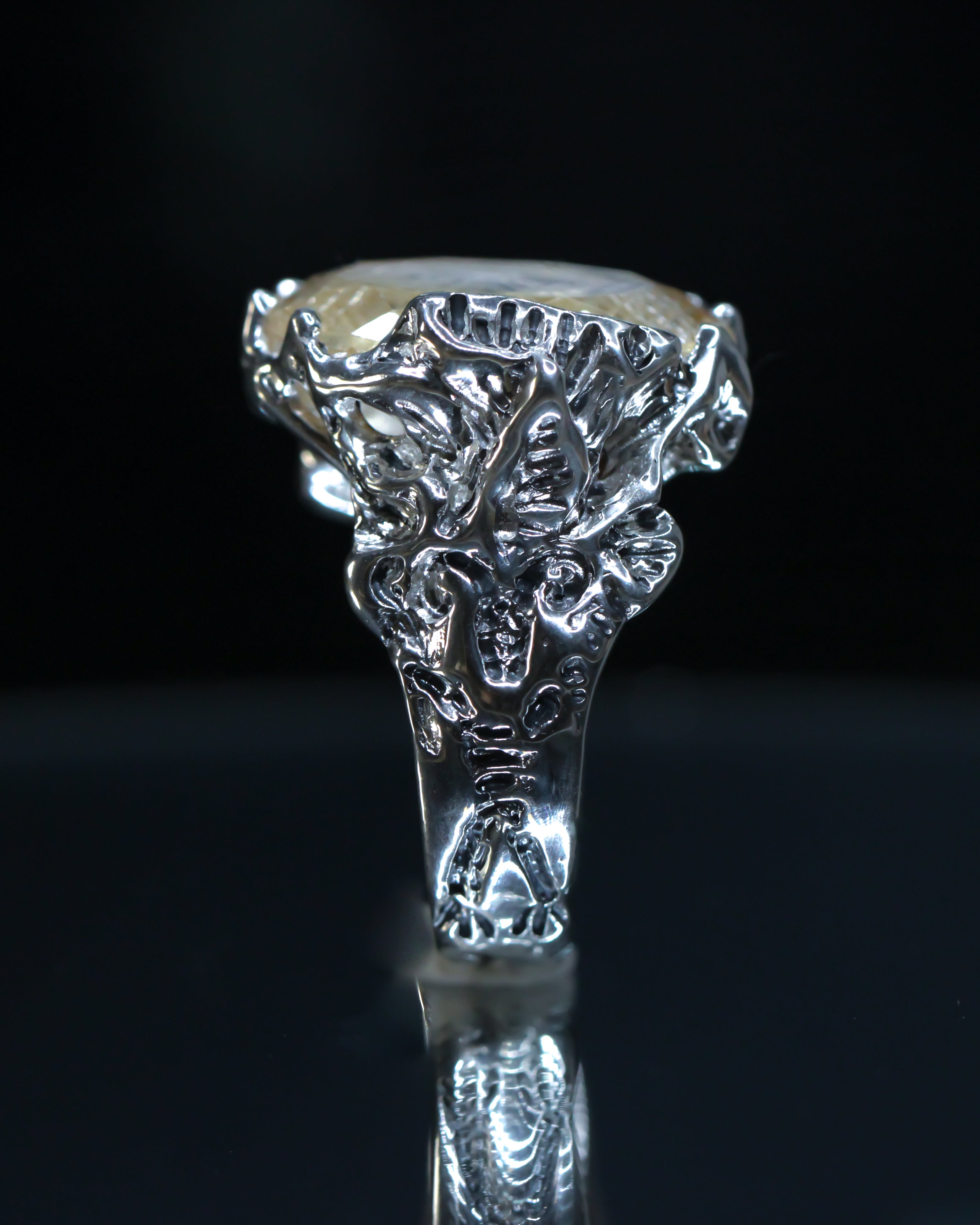 This is a one-of-a-kind ring, hand-carved and cast in sterling silver.