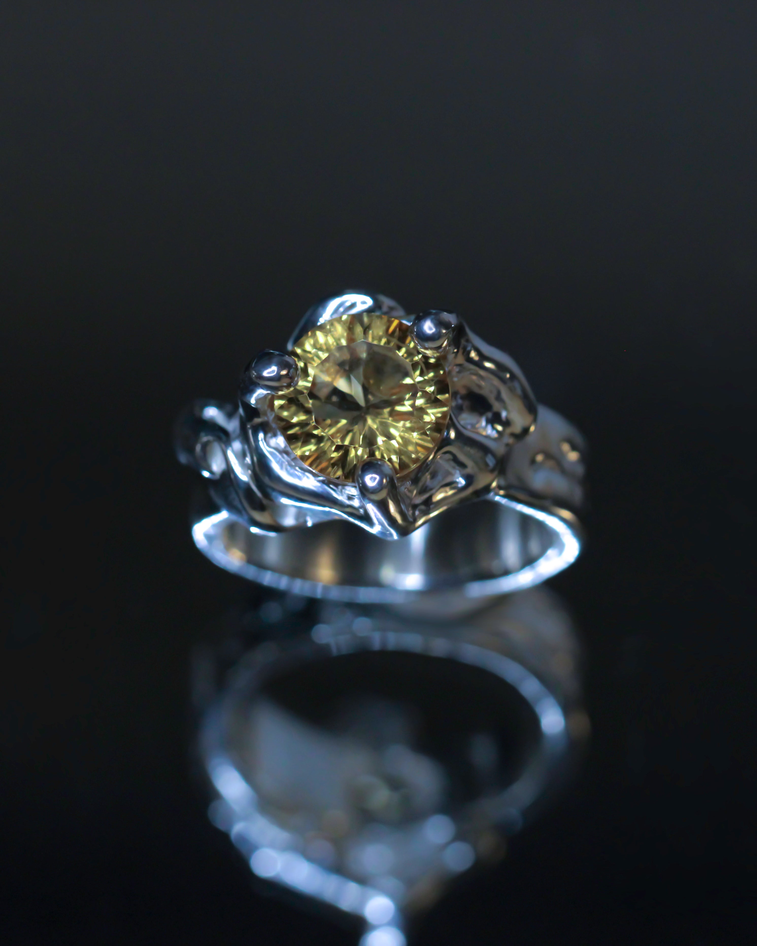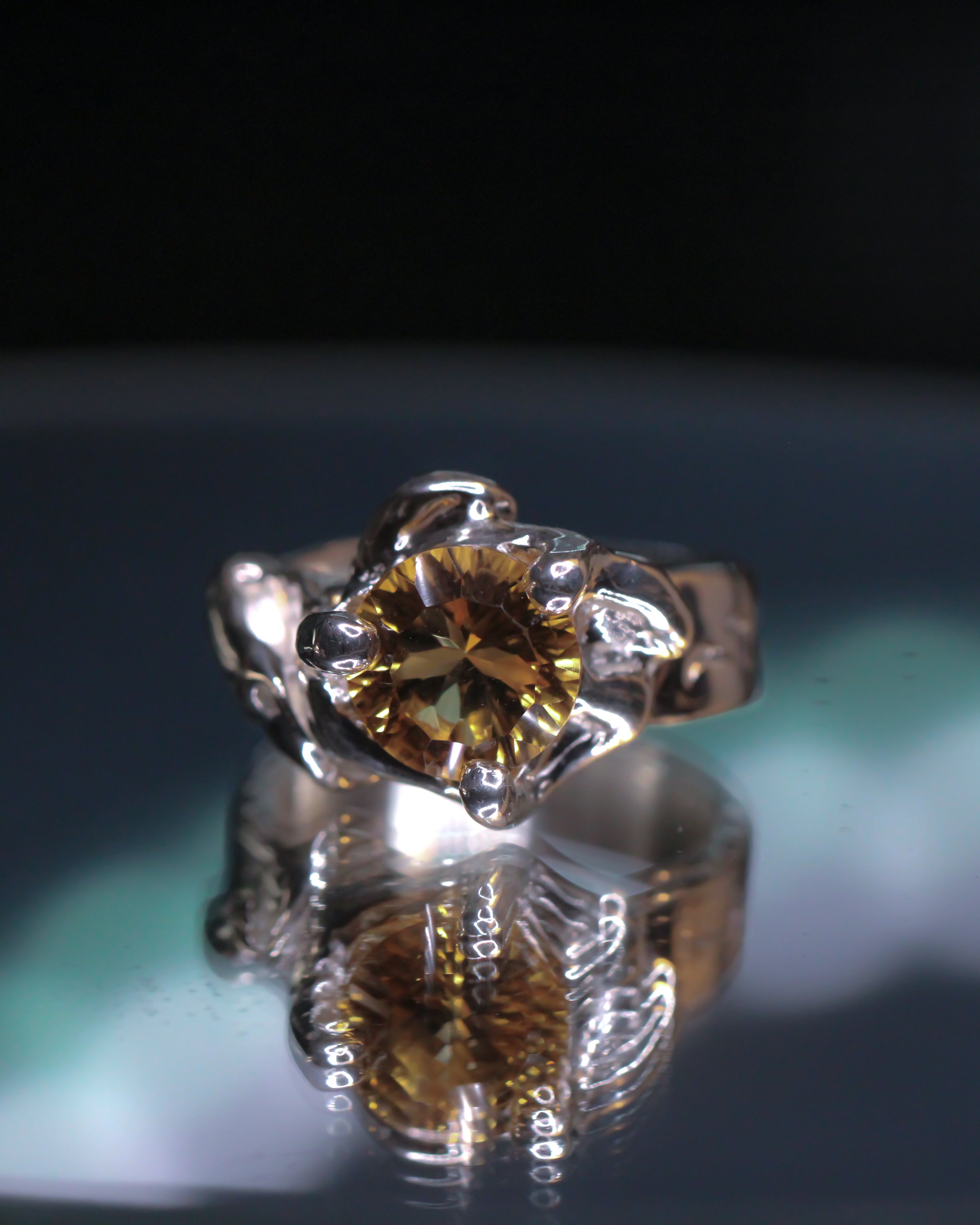 It features a 10 mm round, precision-cut citrine.