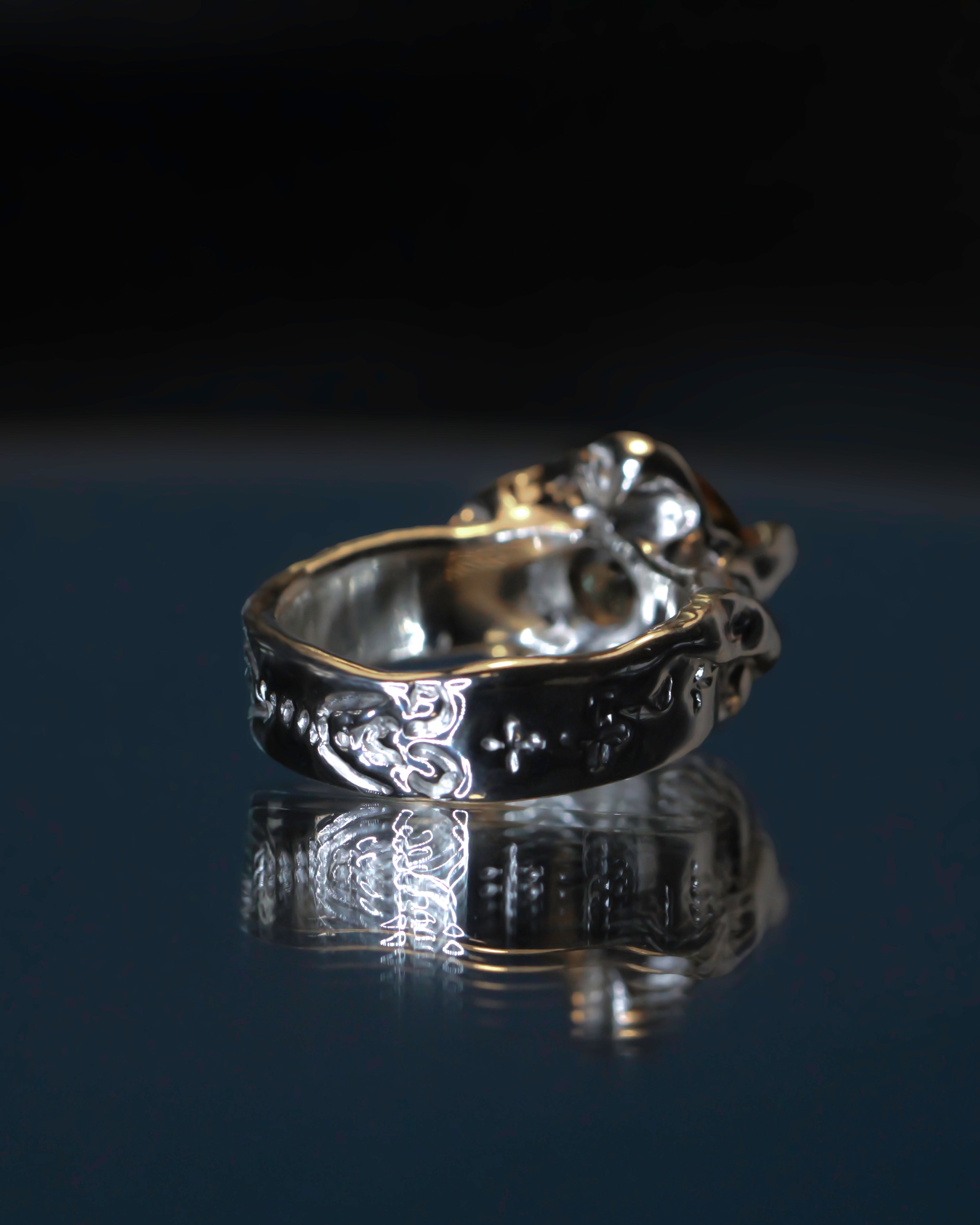 This is a one-of-a-kind ring, hand-carved and cast in sterling silver.