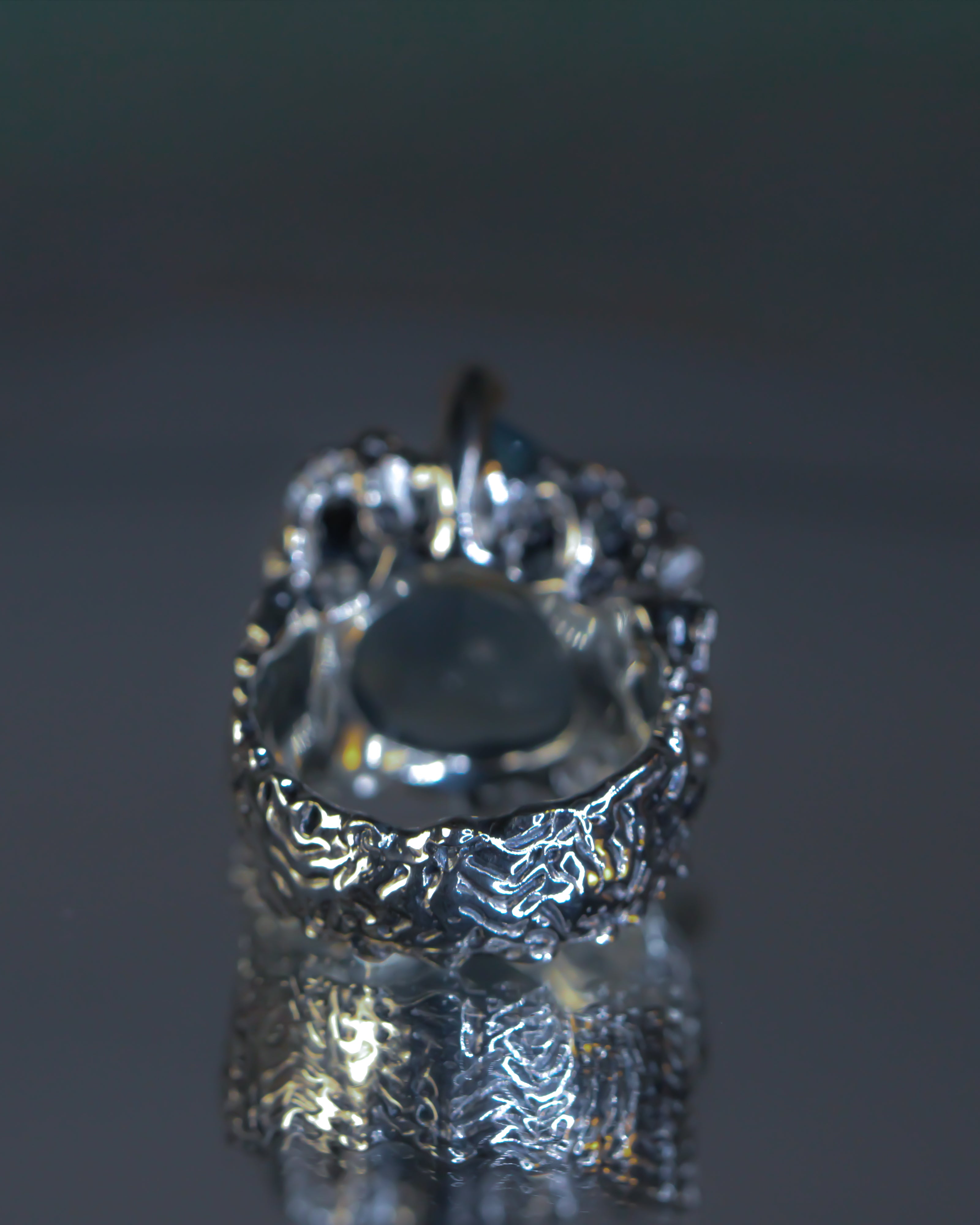 This is a one-of-a-kind ring, hand-carved and cast in sterling silver.