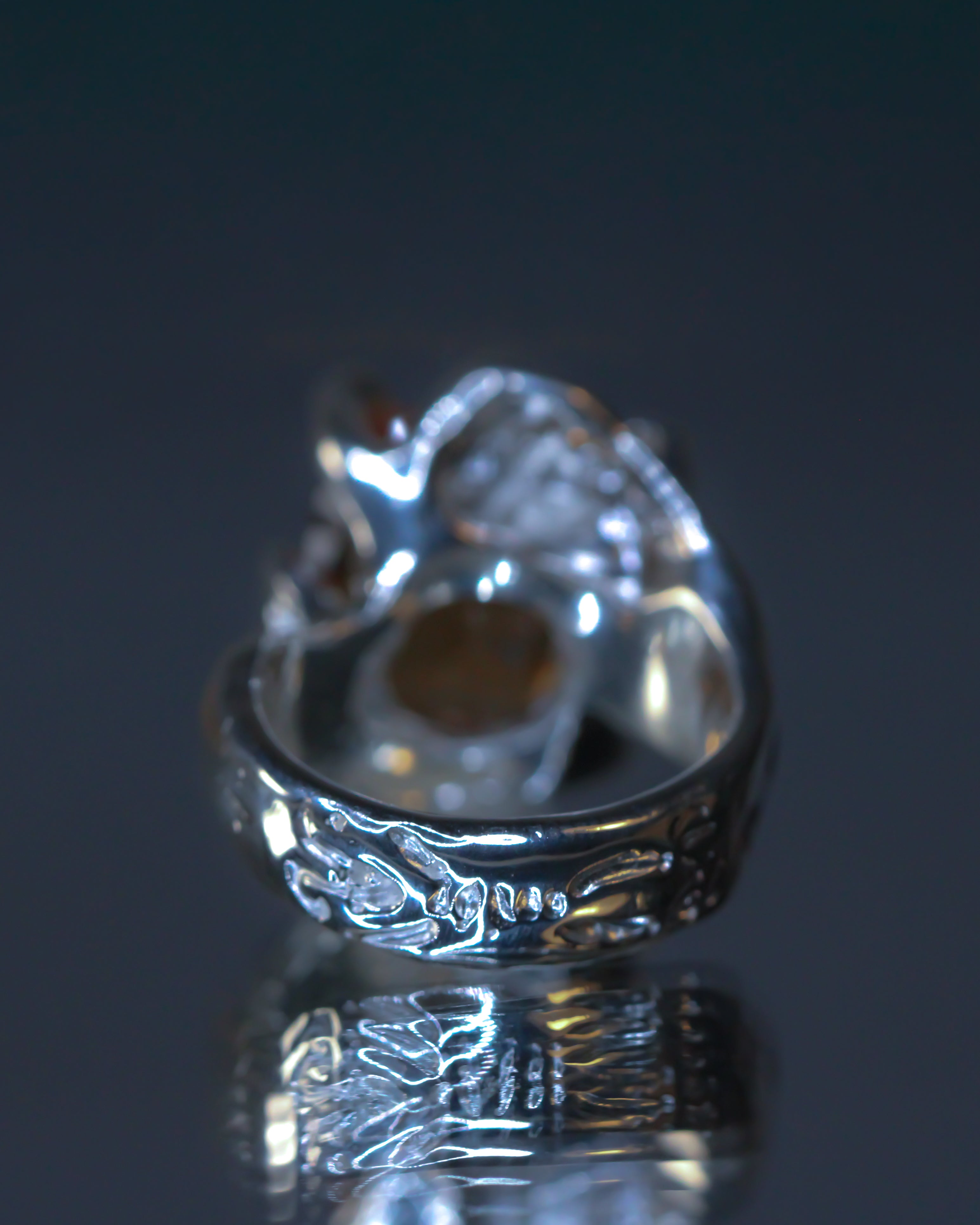 This is a one-of-a-kind ring, hand-carved and cast in sterling silver.