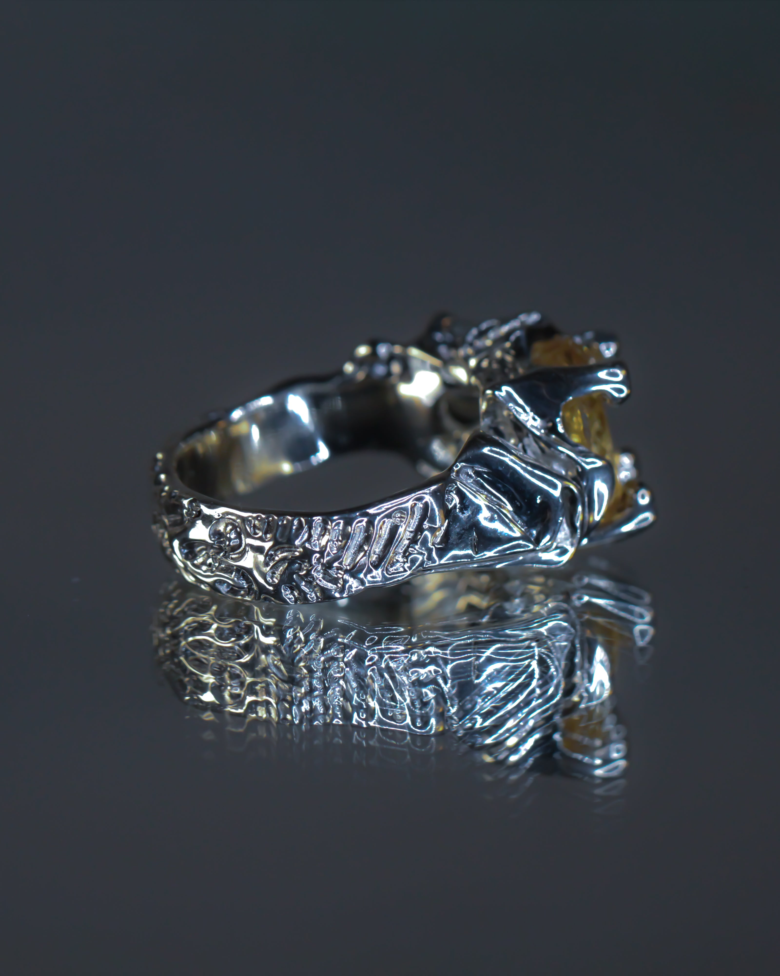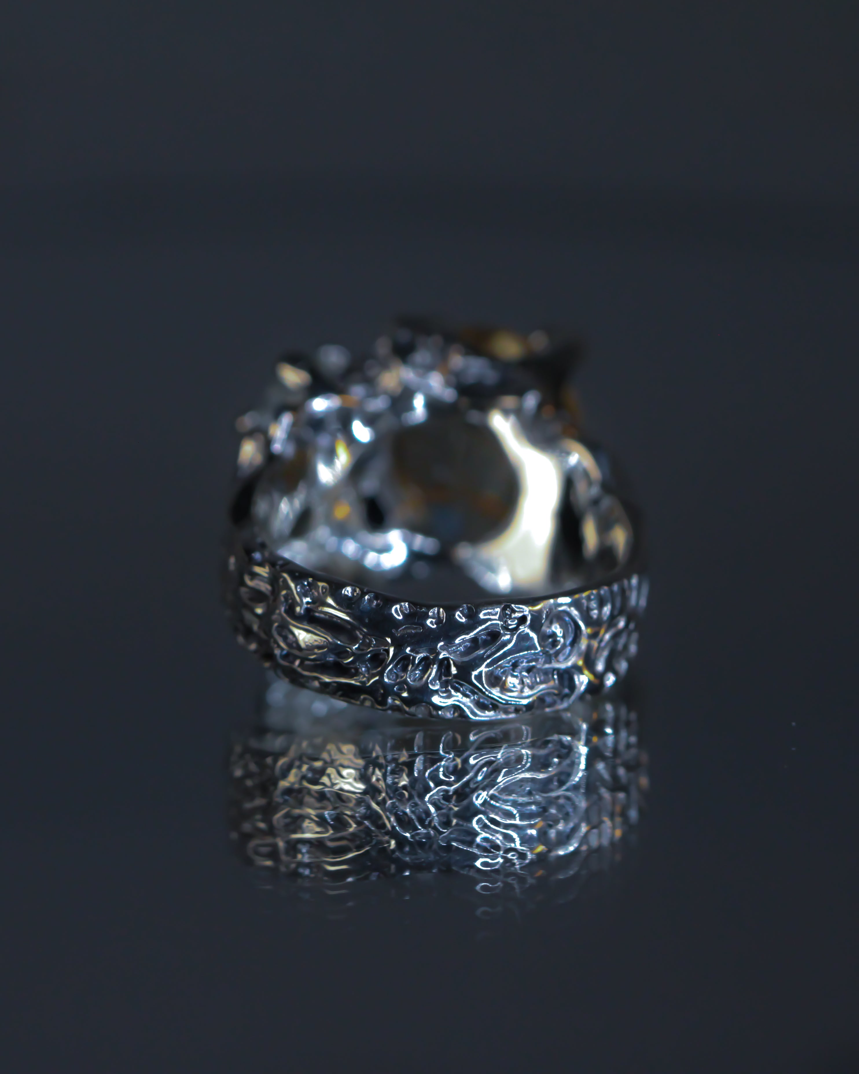 This is a one-of-a-kind ring, hand-carved and cast in sterling silver.